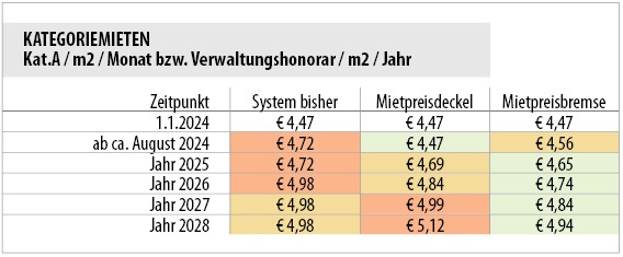 Bereits 2027 werden nach dem Mietpreisdeckel-System höhere Kategorie- Beträge als bisher wirksam sein.