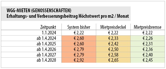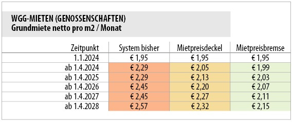 Der Mietpreisdeckel, den die schwarzgrüne Regierung im Dezember 2023 beschlossen hat, bringt mittelfristig für Kategorie-Mieter Nachteile – es wird für Mieter sogar teurer (!) als nach der bisherigen Regelung mit Schwellenwert. Gleiches gilt für die Mehrzahl aller Mieter – egal, ob Kategorie-, Richtwert-, Genossenschaft- oder private Neubau-Mieter - was die Betriebskosten betrifft: durch den stärkeren Anstieg des Kategorie-A-Betrags steigen die Kosten für Verwaltungshonorare stärker als nach dem bisherigen Modell. Für Richtwert-Mieter bringt der Mietpreisdeckel aufgrund eines Einmal- Effekts geringere Mehrkosten als nach der bisherigen Regelung. Für Genossenschaftsmieter steigen Teile ihrer Miete weniger stark an als nach der bisherigen Regelung.