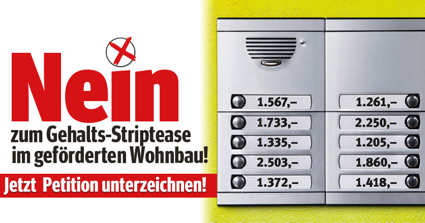 Mietervereinigung Wien startet Petition: „Nein zum Gehalts-Striptease im geförderten Wohnbau“