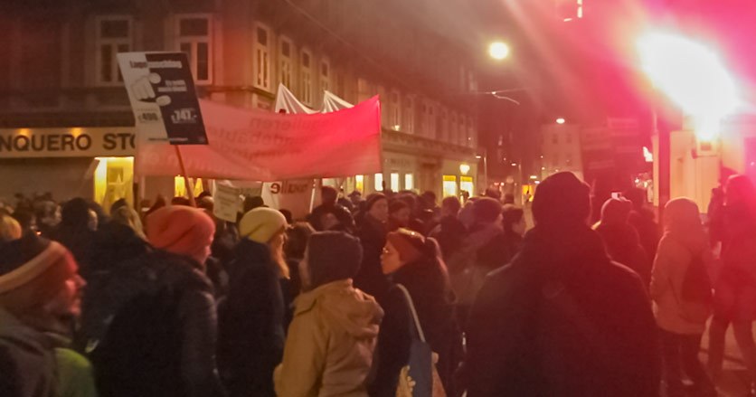 Der große Demo-Zug, dem sich mehrere tausend Menschen angeschlossen hatten, zog anschließend lautstark und friedlich quer durch den 8. Bezirk und über den Gürtel wieder hinaus in den 16. Bezirk, wo im Leon Askin-Park (mitten in einem „Gründerzeitviertel“) eine stimmungsvolle Abschlusskundgebung stattfand.